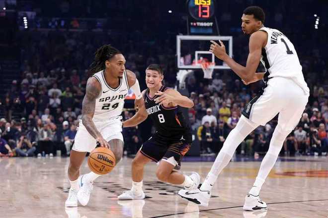 北京时间11月3日,NBA常规赛马刺客场对阵太阳,文班亚马状态低迷,新科榜眼哈珀左小腿拉伤提前退赛,马刺遭太阳压制最多时刻落后31分差距。马刺顽强反扑末节追到差14分,太阳再度拉开20+领先优势,马刺提前放弃无力回天,最终马刺118-130爆冷输太阳结束5连胜吞首败,太阳收获2连胜。